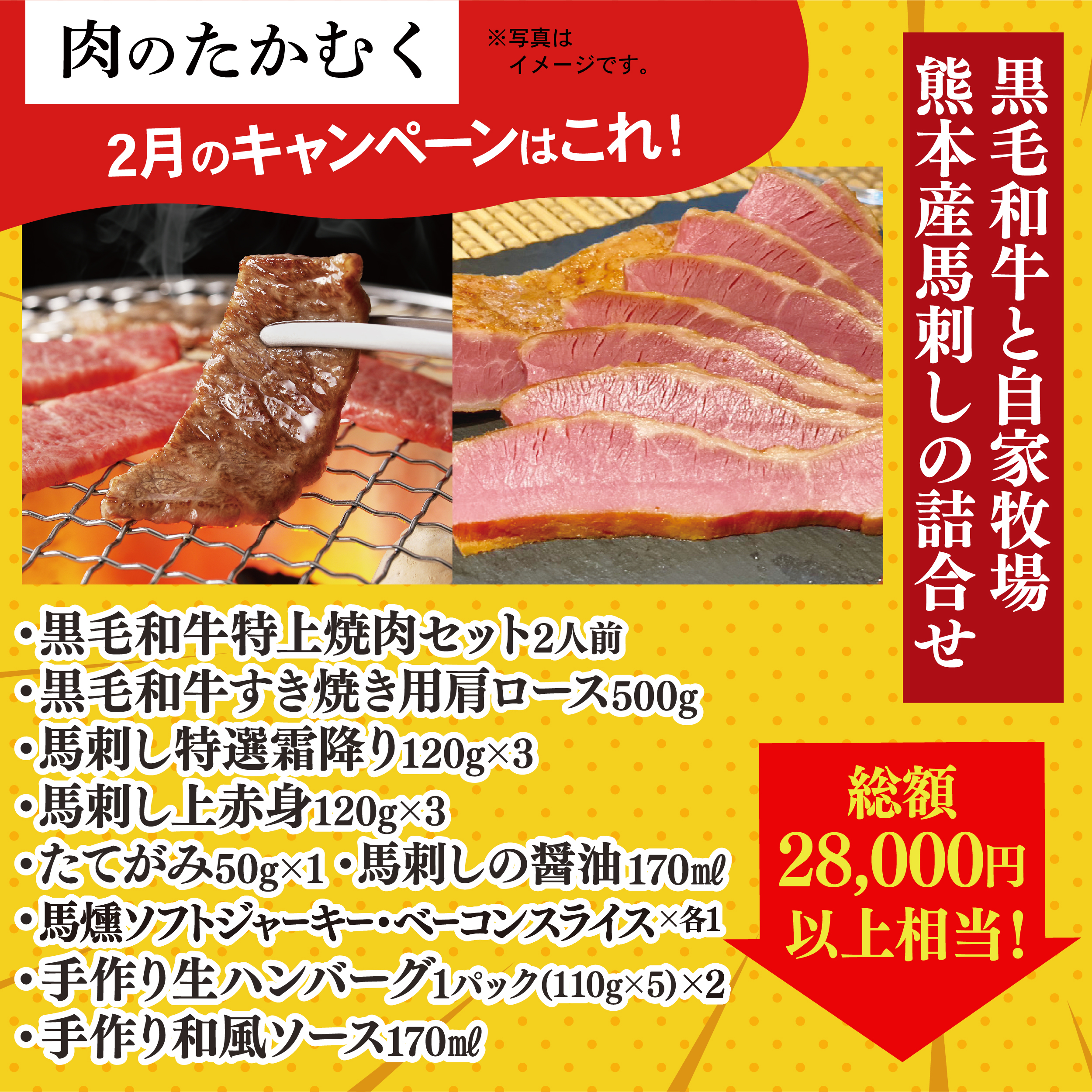 福袋販売延長!黒毛和牛と自家牧場熊本産馬刺しの詰合せ