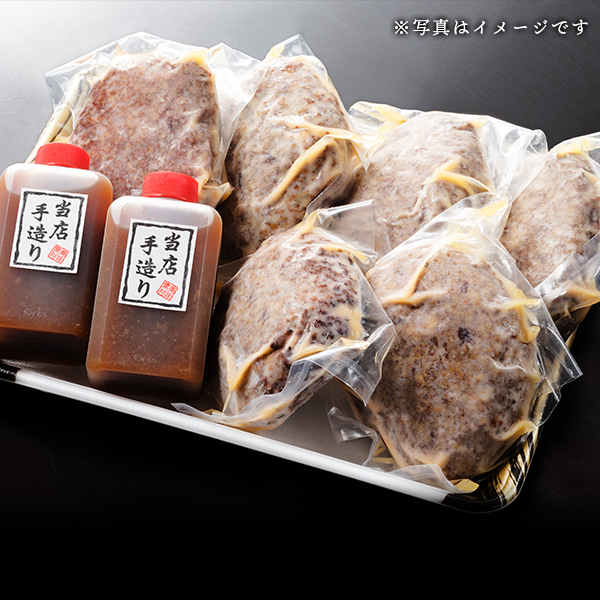 黒毛和牛と馬肉を使用した焼ハンバーグ 大 6個セットと特製ソースをセットでお届けします。