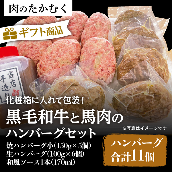 【ギフト商品】黒毛和牛と馬肉のハンバーグセット(和風ソース付)