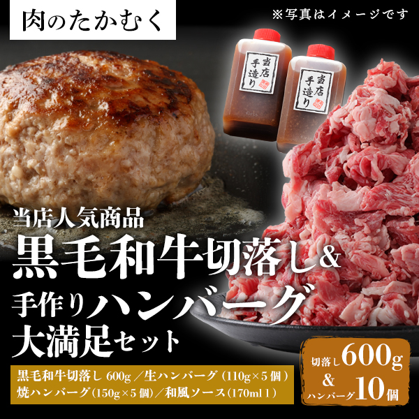 【当店人気商品詰め合わせ!】黒毛和牛切落し&手作りハンバーグ大満足セット