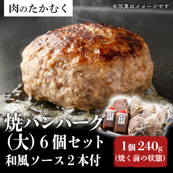 焼ハンバーグ 大 6個セット 和風ソース2本付 (1個240g:焼く前の状態)