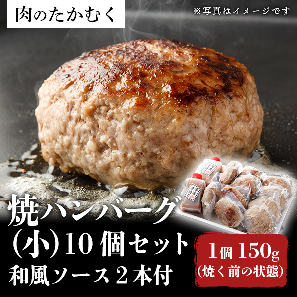 焼ハンバーグ 小 10個セット 和風ソース2本付き (1個150g:焼く前の状態)
