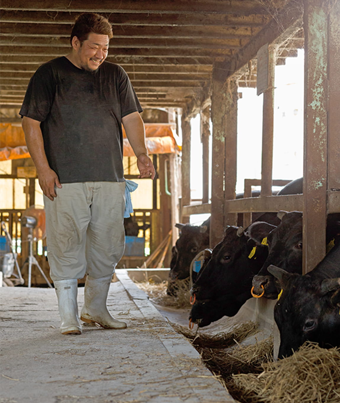 餌は、牛が好んでよく食べる嗜好性が良いものを与えています。導入期に胃腸を鍛えているのでバランスの良い肉質になり、さらにこだわりのオリジナルの飼料を与えるため、甘味のある美味しいお肉になるのです。